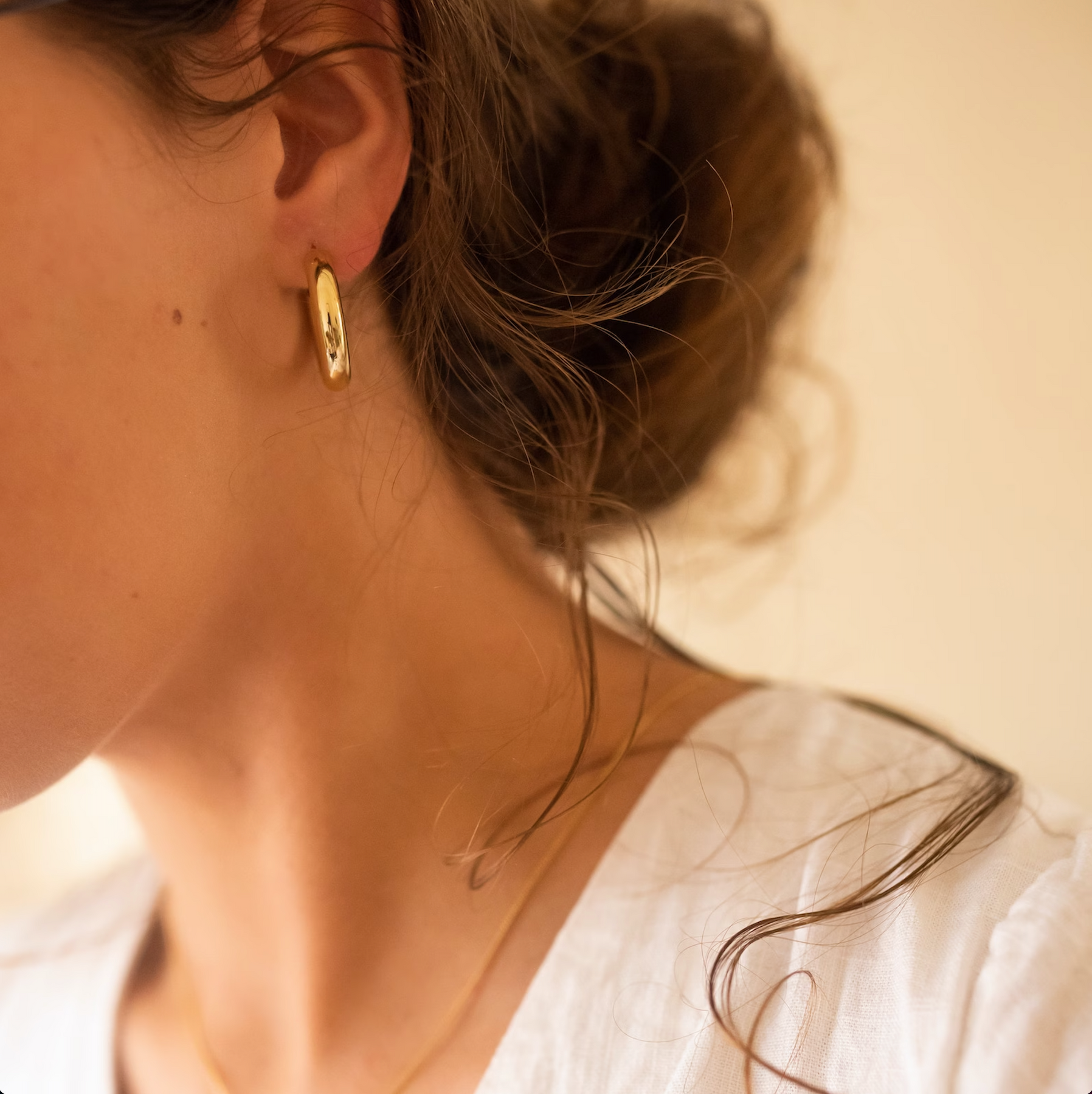 La créole épaisse en or parfaite n'existe pas....tiens, mon rosé. Les créoles Fae sont un accessoire élégant et absolument indispensable qui complète n'importe quel look ! Nous les avons conçues pour un port 24/7, de la plage à la salle de sport et retour.